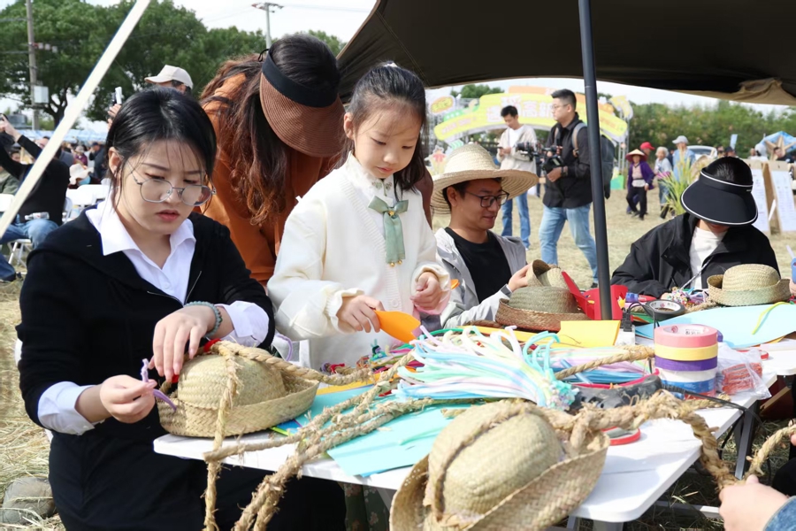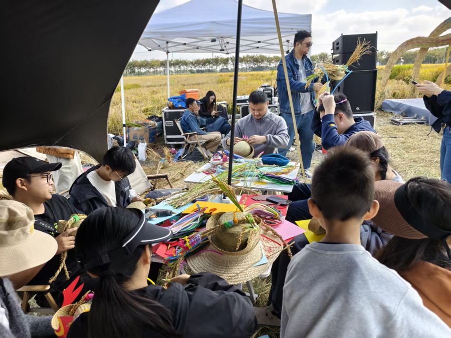 在 “稻乐之城” 音乐会现场,音乐人以稻田为天然舞台,市民坐在田间,伴着稻浪起伏聆听大地韵律。“稻绘美好” 手作区里,亲子家庭围坐一起,用稻草编织传统稻秆工艺,让农耕文化在互动中传承。