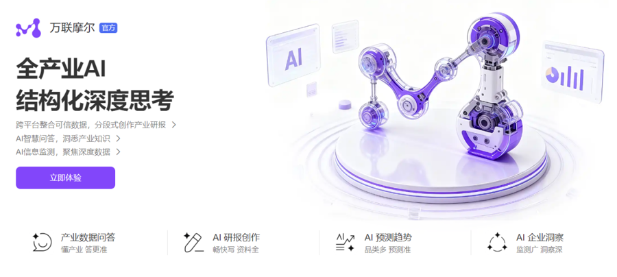 据了解,作为首个面向全产业打造的AI大模型,万联摩尔不仅包含产业知识问答、产业数据问答等专业功能,同时具备AI研报创作、价格预测、企业洞察三大核心功能。