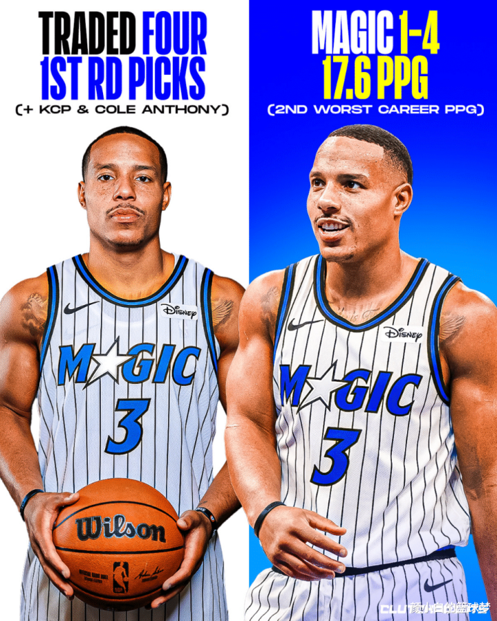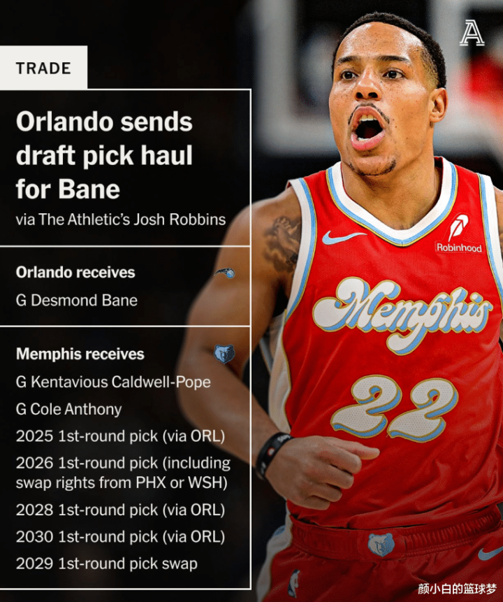 奥兰多魔术队今夏最大的运作就是从孟菲斯换来了德斯蒙德-贝恩,这笔交易史称7换1,魔术送出了4个首轮签与一个2029年的首轮互换权、科尔-安东尼、波普,当时魔术引进贝恩就是为了解决外线投射、进攻疲乏的软肋,如今呢?